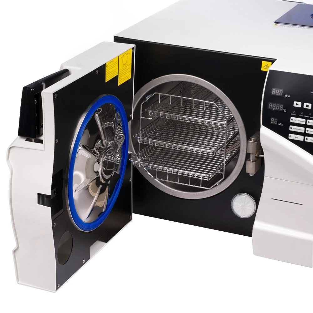 Autoklaw jest wygodny w codziennym użytkowaniu i nie wymaga zaawansowanej obsługi. Duży zbiornik na wodę pozwala przeprowadzić do 8 sterylizacji bez konieczności uzupełniania. Predefiniowane programy sterylizacji (jest ich 5) umożliwiają dobór odpowiednich ustawień za pomocą kilku przycisków. Istnieje także opcja ręcznego ustawienia parametrów pracy, m.in. czasu suszenia (w granicach 1-60 minut). Zintegrowana drukarka ułatwia analizę raportów pracy urządzenia. Urządzenia posiadają nowoczesny wyświetlacz LCD, który sprawia, że praca z autoklawem jest jeszcze bardziej komfortowa. Dodatkowo elegancka stylistyka autoklawu sprawdzi się w każdym salonie urody.