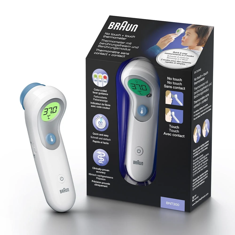 Termometr bezdotykowy i dotykowy BNT 300 BRAUN to szybki i wygodny sposób na pomiar temperatury dla całej rodziny!
