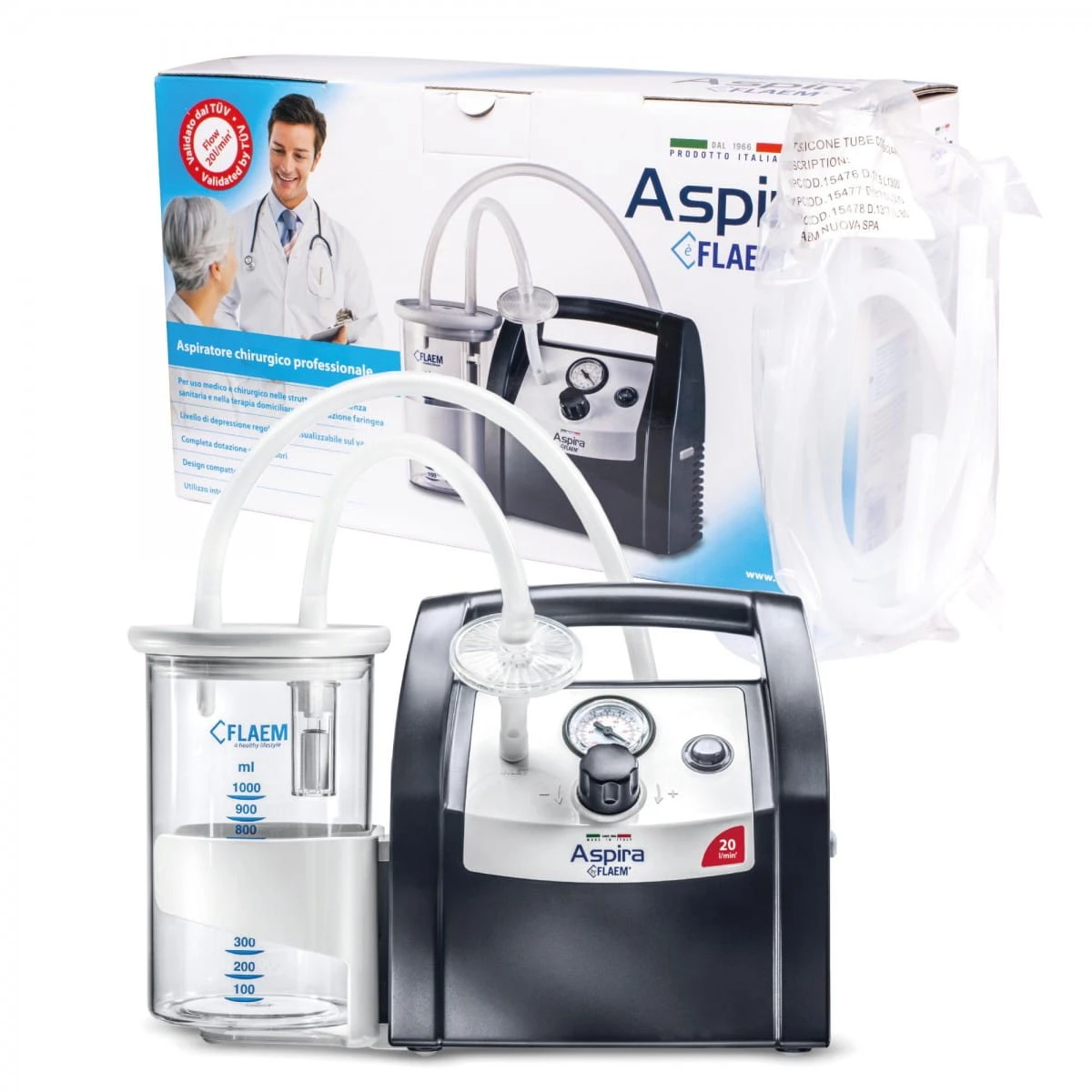 Flaem Aspira PLUS to godny następca wcześniejszego model Flaem Aspira. Flaem Aspira jest zalecany zarówno do użytku szpitalnego jak i domowego. Może być wykorzystany do odsysania wszelkiego rodzaju wydzielin: krwi, śluzu itp.