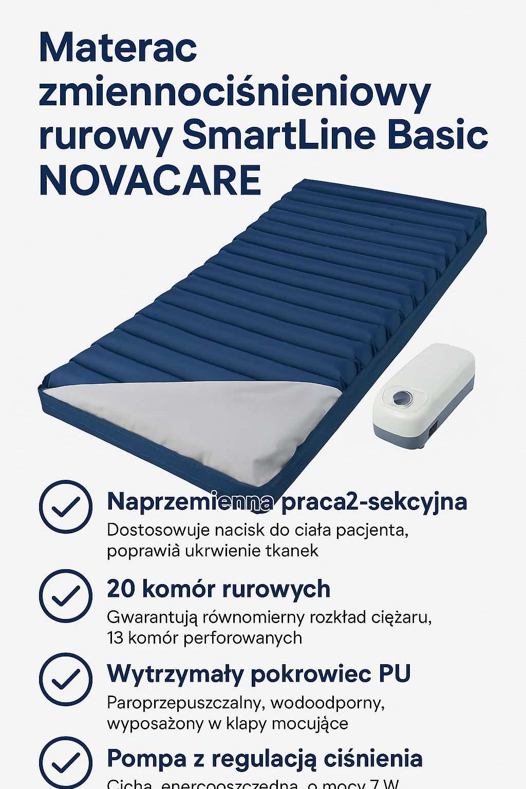 Materac zmiennociśnieniowy rurowy SmartLine Basic NOVACARE – skuteczna ochrona przed odleżynami każdego dnia