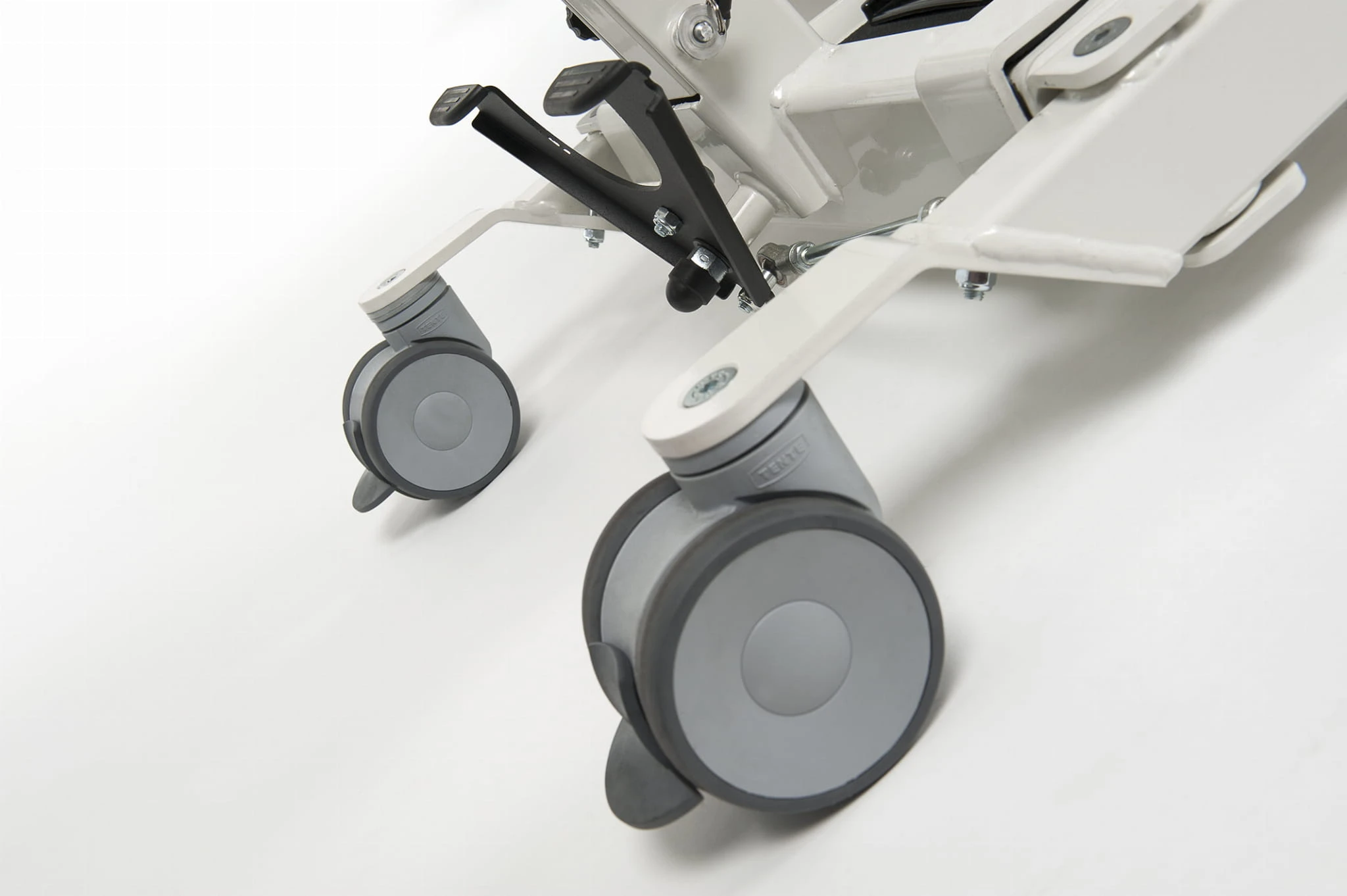 - Odpowiednia platforma na stopy wyposażona w antypoślizgowe wkładki oraz prawidłowe wsparcie kolan z psem zabezpieczającym łydki doskonale stabilizuje nogi. Jeżeli jest wymagana większa stabilizacja stóp można zastosować specjalne korytka na stopy z paskami stabilizacyjnymi.