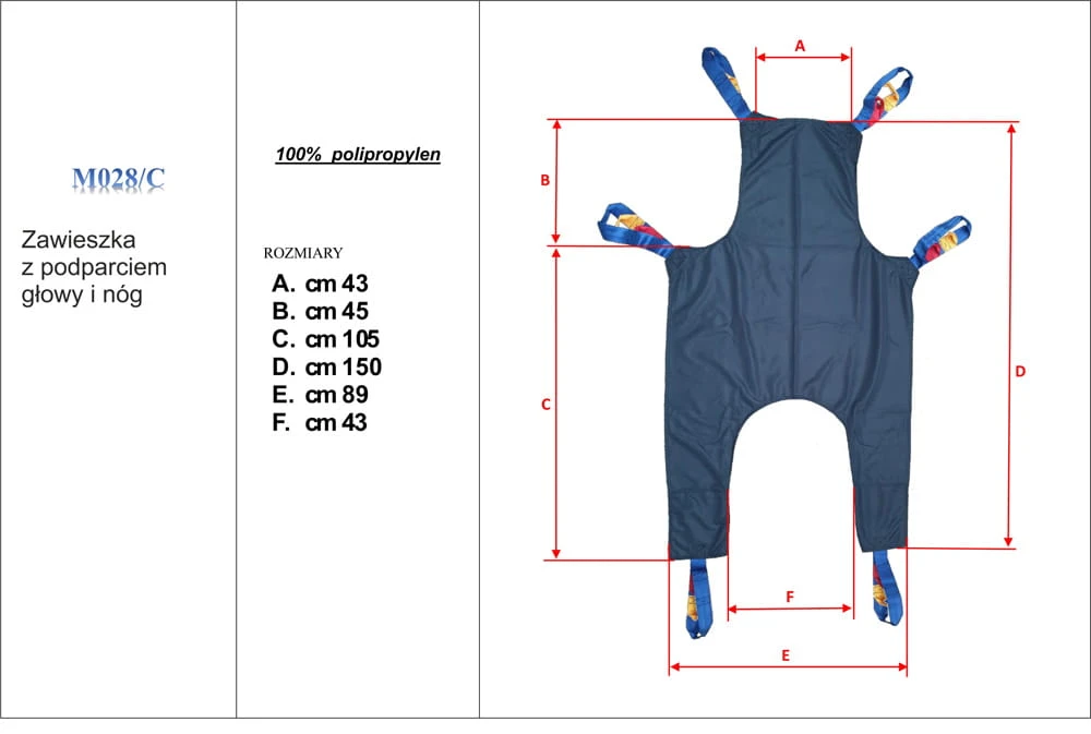 - Czteropunktowy wieszak do mocowania kosza transportowego – specjalnej podwieszki, z możliwością regulacji daje pewną i stabilną pozycję pacjenta – M028/C.