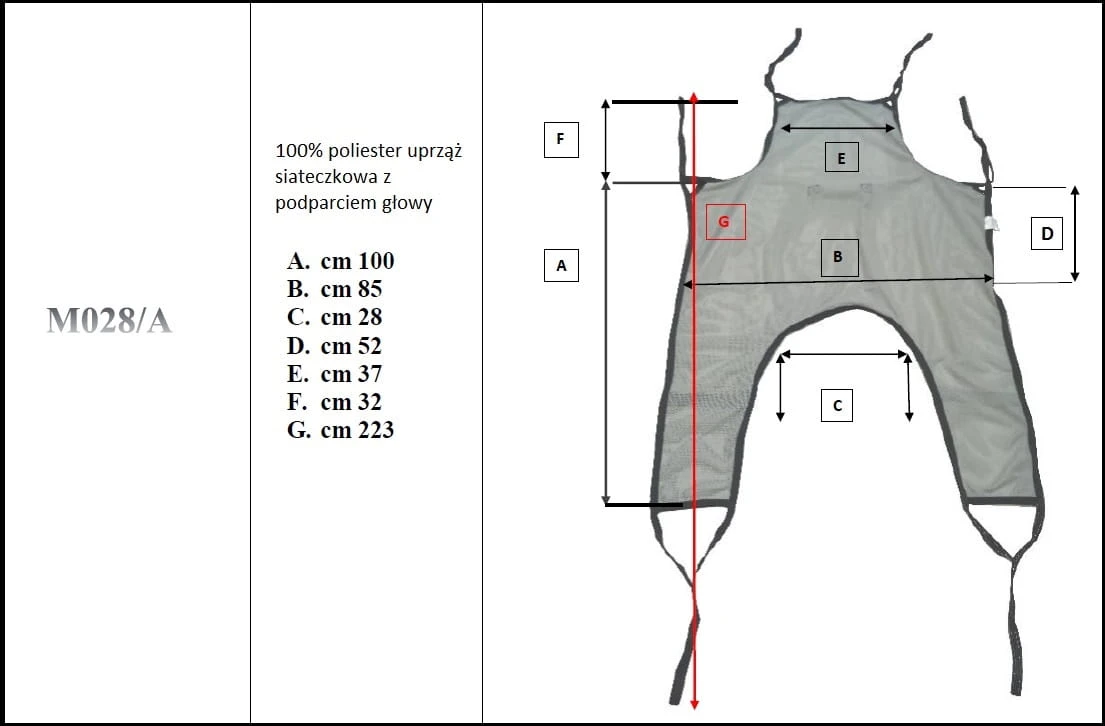 - Czteropunktowy wieszak do mocowania kosza transportowego – specjalnej podwieszki, z możliwością regulacji daje pewną i stabilną pozycję pacjenta – M028/A.