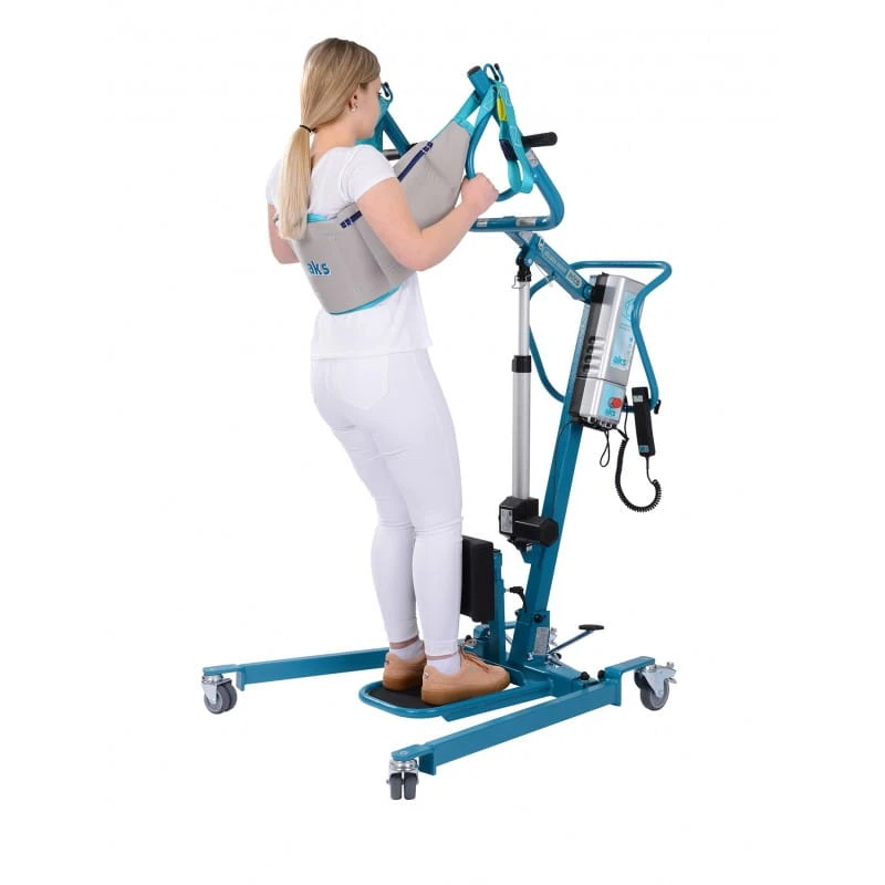 AKS- Dualo - mini to mniejsza wersja popularnego podnośnika AKS - Dualo. Ze względu na mały rozmiar idealnie nadaje się do małych mieszkań o wąskich drzwiach. Może być używany zarówno w domach prywatnych jak i w ośrodkach opieki. Ze względu na komfort użytkownika podnośnik ten zalecany jest przede wszystkim dla osób o drobnej budowie ciała lub dla dzieci.