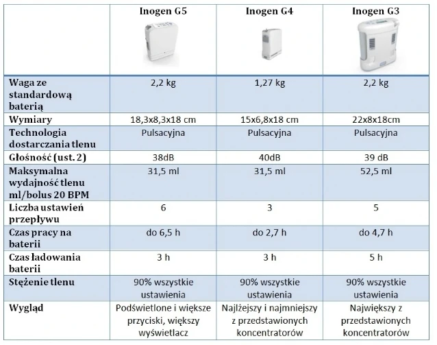 Ze względu na niezawodność,prostotę obsługi i wysokie stężenie podawanego tlenu - nasza firma poleca szczególnie koncentratory tlenu firmy Inogen.Jest to sprzęt wysokiej jakości który sprawdzi się w każdych warunkach.Dodatkową i ważną zaletą są niskie koszty serwisu i wymian sit molekularnych (sit tlenowych) - gdzie użytkownik w paru prostych krokach może to uczynić samodzielnie bez potrzeby odsyłania koncentratora do serwisu.