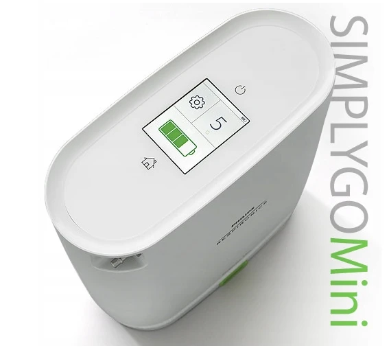 SimplyGo MINI w porównaniu do stacjonarnych koncentratorów tlenu jest wyjątkowo lekki bo waży 2,3 kg (wraz z standardowa baterią), wymiennie może być zasilany prądem stałym, jak i baterią wydłużającą czas pracy , dzięki której może pracować do 9 godzin (waga wzrasta do 2,7 kg).