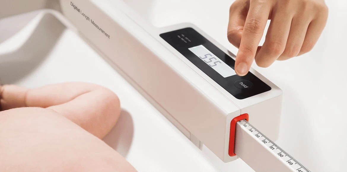 Cyfrowy wzrostomierz ułatwia pomiar długości dziecka dzięki podświetlanemu wyświetlaczowi LCD i praktycznemu pokrętłu. Jego obsługa jest prosta, a wyniki łatwe do odczytania.