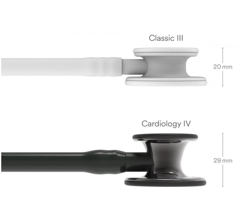 - Wysoki profil i ergonomiczny kształt; o 40% większa głowica i o 60% głębszy lejek niż w stetoskopie 3M™ Littmann® Classic III™