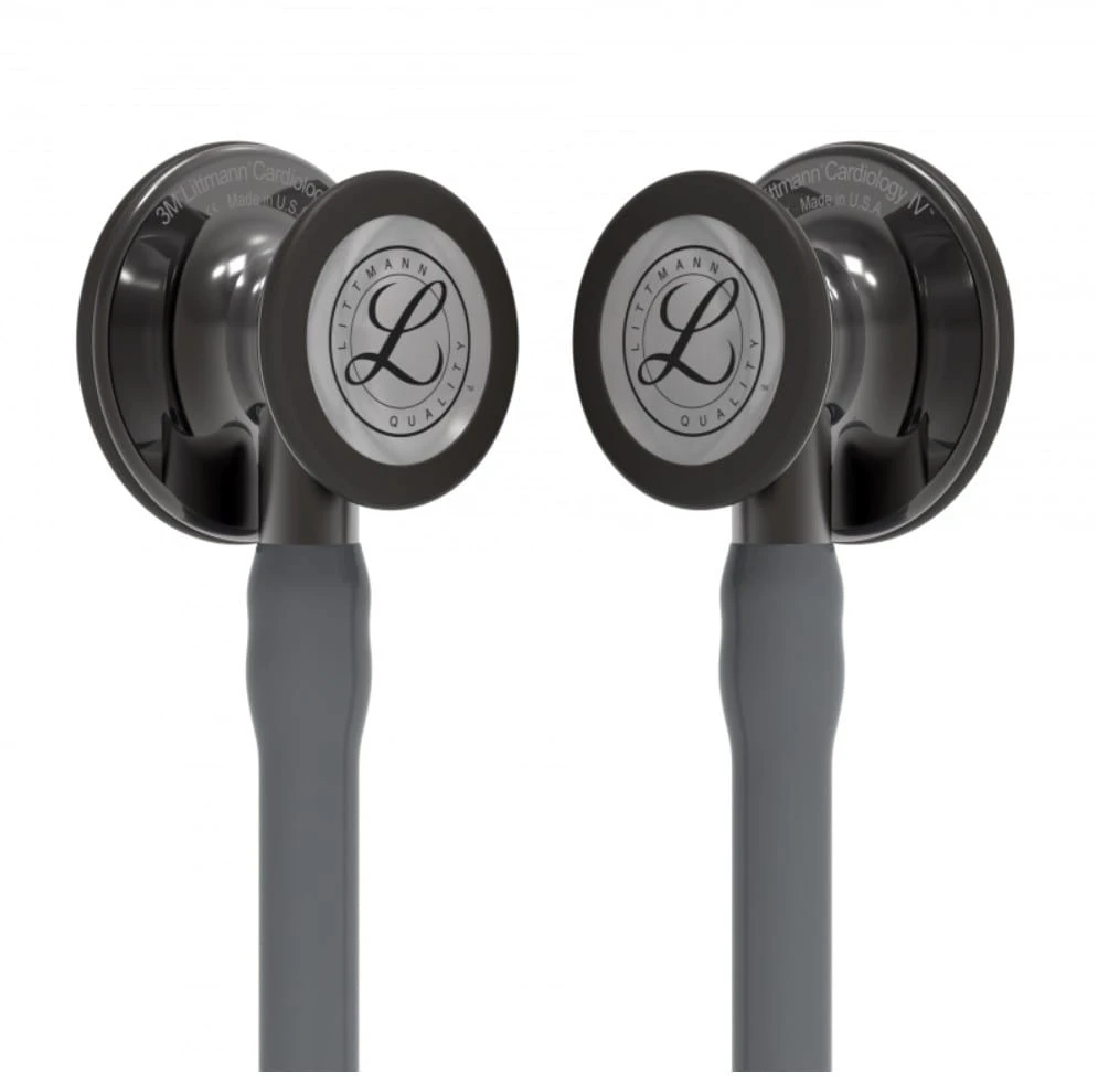 Prezentowany model to 3M™ Littmann® Cardiology IV™ z wykończeniem w kolorze high Polish Smoke. Przewód szary. Trzon i lira w kolorze smoke Model: 6238.
