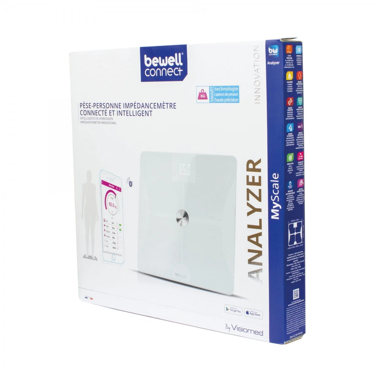 MyScale łatwo łączy się i automatycznie synchronizuje z aplikacją BewellConnect przez Bluetooth. Mierz swoje postępy z całkowitą pewnością. Spersonalizowane śledzenie na podstawie zapisanego profilu (wykresy do śledzenia postępów, pulpit nawigacyjny). Dostępna opcja udostępniania danych lekarzowi lub bliskim. Dane dotyczące zdrowia są bezpieczne (serwery certyfikowane przez francuskie Ministerstwo Zdrowia). Dostępne w App Store i Google Play.